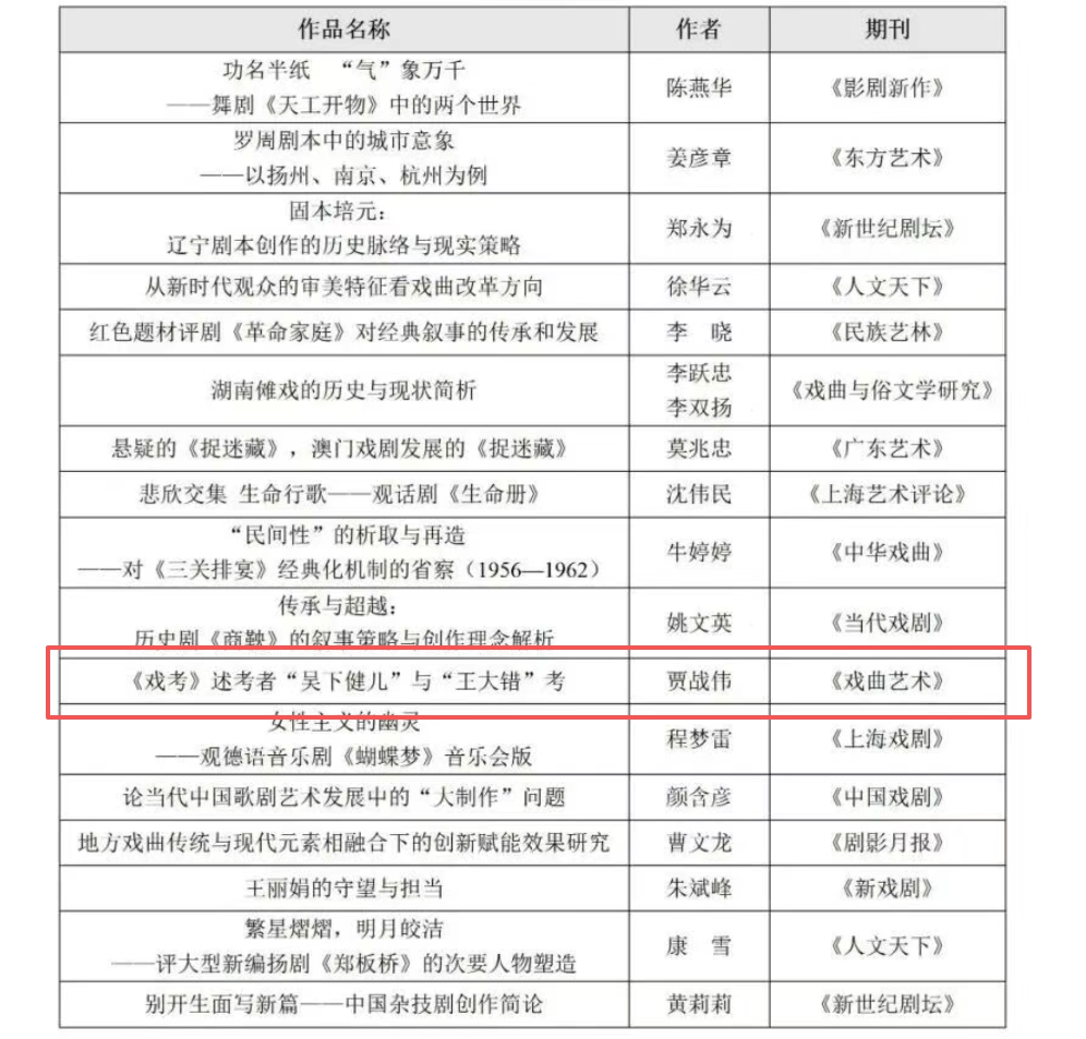 田汉戏剧奖自1987年发起,现为上海戏剧学院、全国戏剧期刊联盟、田汉戏剧奖组委会等相关机构主办的国家级学术评奖,与曹禺戏剧文学奖等并列。它是戏剧权威标杆,评选专业公正,是连接创作与研究的纽带,引领戏剧学科发展,在戏剧界地位重要。此次获奖,既是对贾战伟老师学术研究成果的高度认可,也彰显了威廉希尔体育在戏剧与影视学研究领域的学科实力。