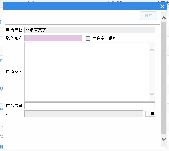 “申请转专业”进入转专业申请界面