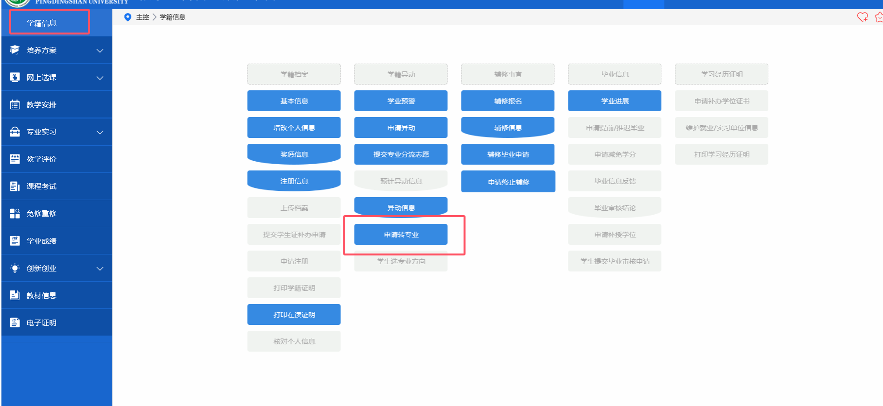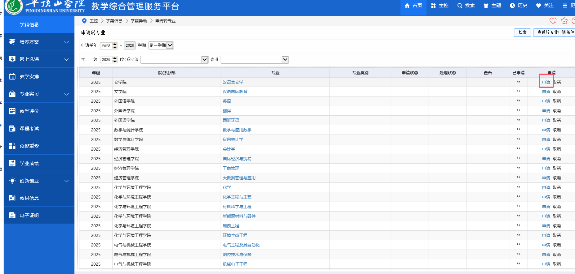 2025级转专业网上申请流程